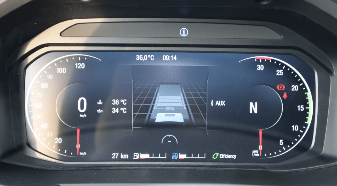 而且这款仪表盘信息十分丰富,尿素量、车辆状态、油温水温等多项参数都可以查看。