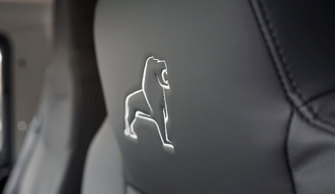 头枕上还精致的刺绣了雄狮标,内部填充舒适度更高的海绵,